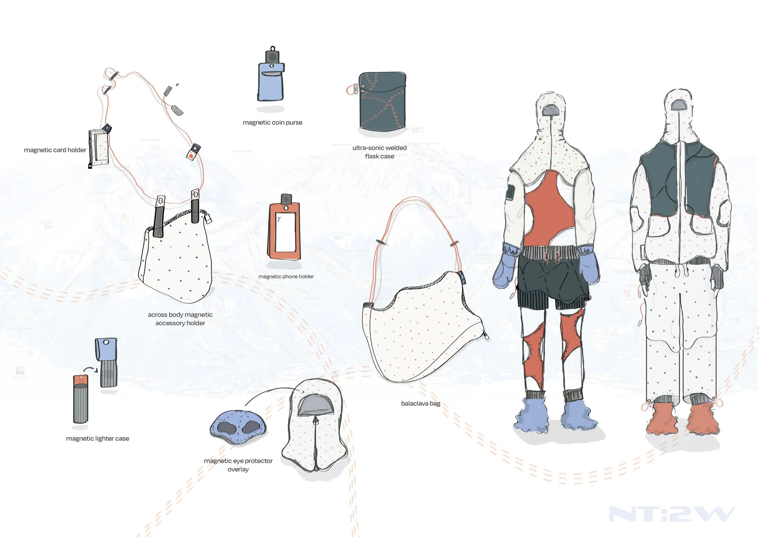 “No Time To Waste Time” aimed to create a product range and promotional film inspired by the nostalgic film photography of my family ski holidays. The range features pioneering innovations in practicality, showcased through the film, which mirrors the aesthetic of a personal home video. This approach creates a comforting and heartfelt concept that resonates with customers.